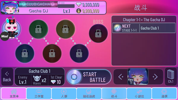 4、您还可以玩自己喜欢的迷你游戏,并向Gacha收集宝石和字节,以获得更多单位。