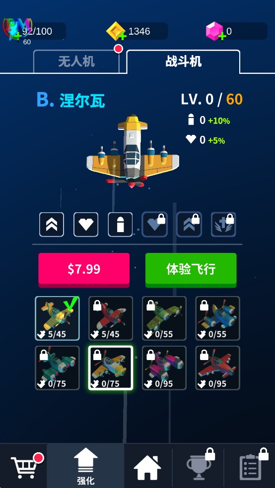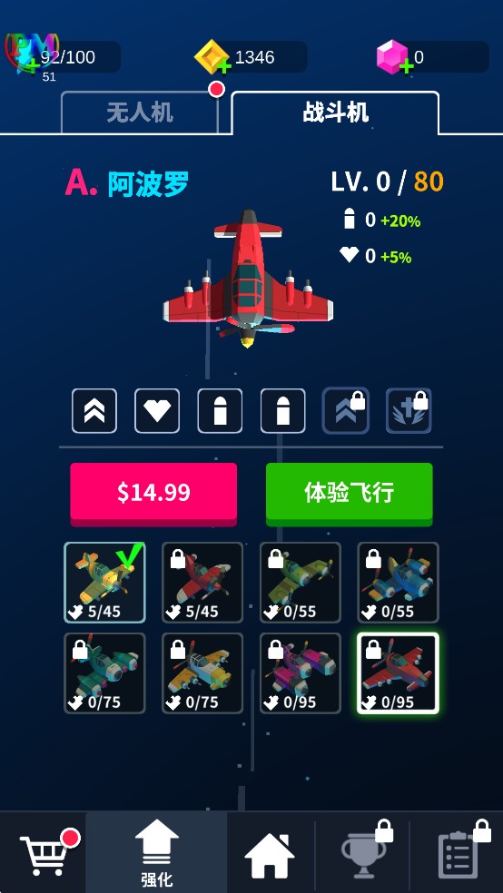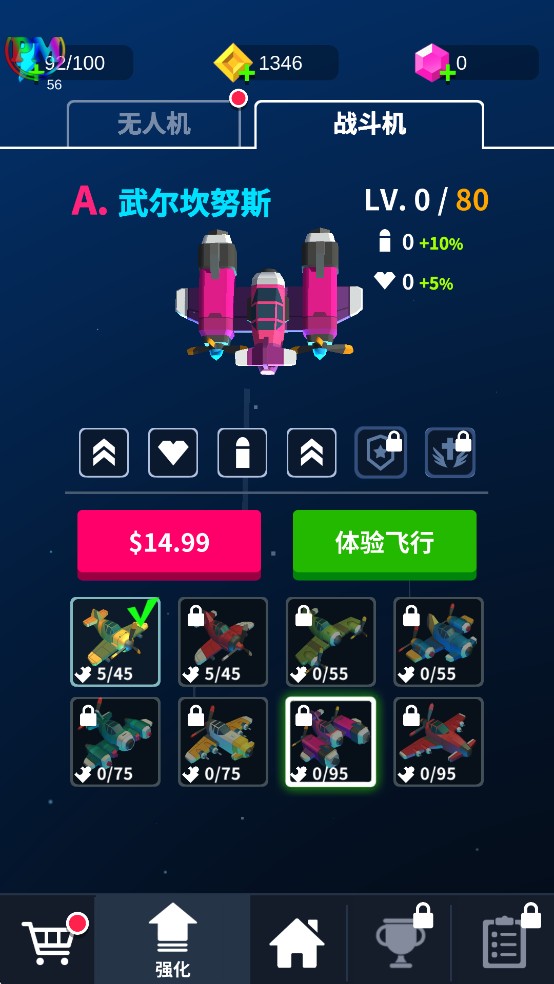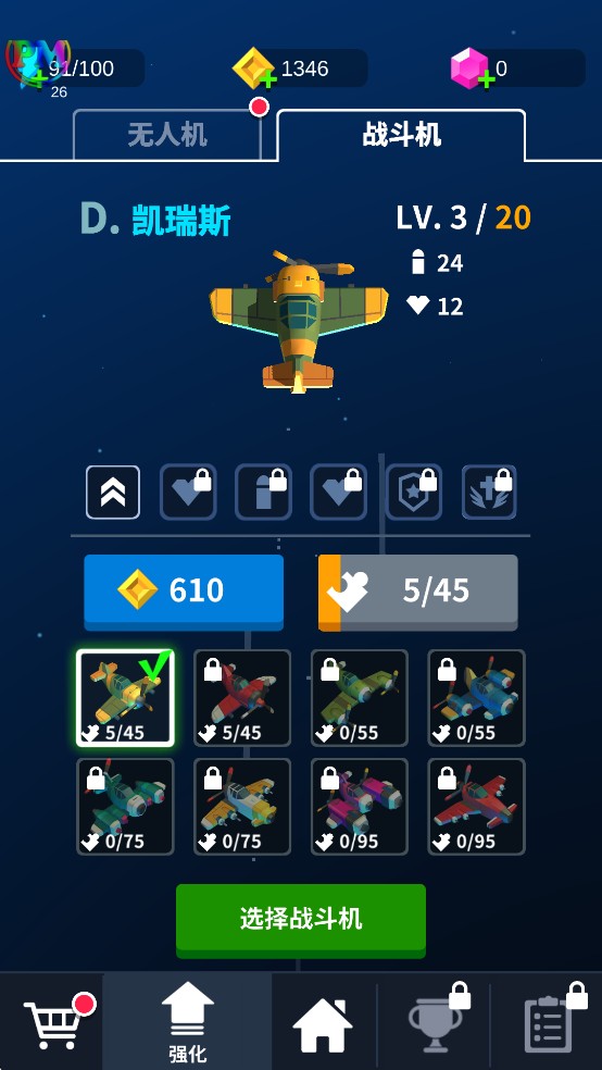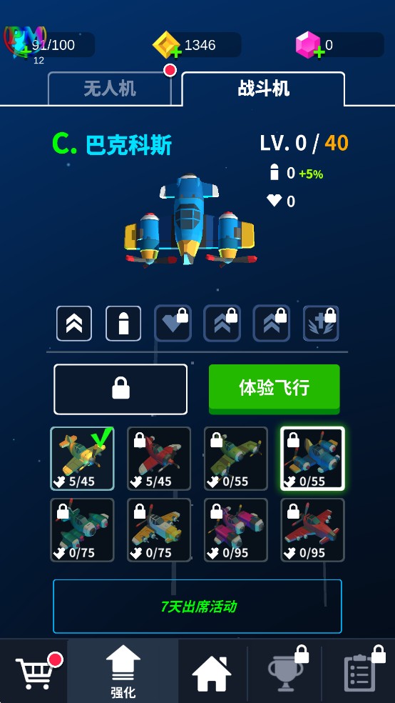 3、多种类型的机型可以供玩家选择,从操控,火力,炸弹等多个方面都具有差异,玩家可以根据自己习惯选择。