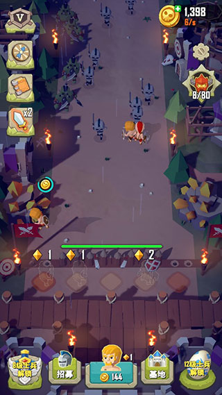 1、开局大家需要不断召唤士兵,抵达怪物的进攻。