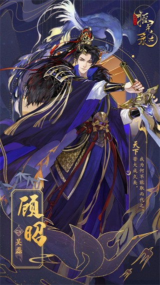 墨发蓝衣的顾昭,在游戏当中的身份是大成极具威望的大将军,不爱上朝是因为不喜欢和朝中党派进行争斗,打仗的能力一流。大成国君对他又爱又怕,顾昭这人最大的愿望就是希望天下安定,百姓安居乐业。