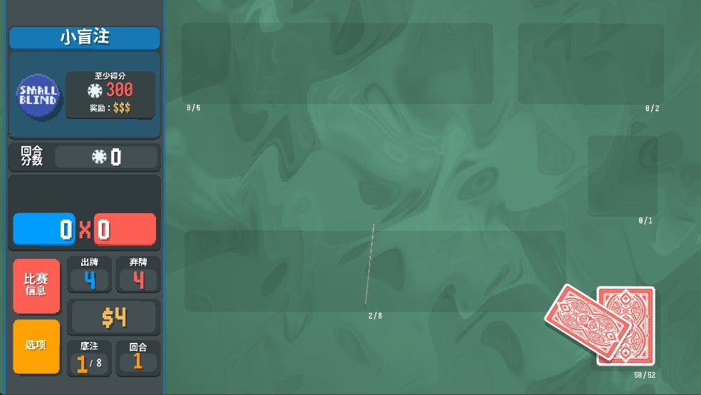 4、模组里新增了10种盲注,但对新手来说风险很大,建议前期尽量选择简单的盲注挑战,等牌组强度起来后再尝试更高难度。