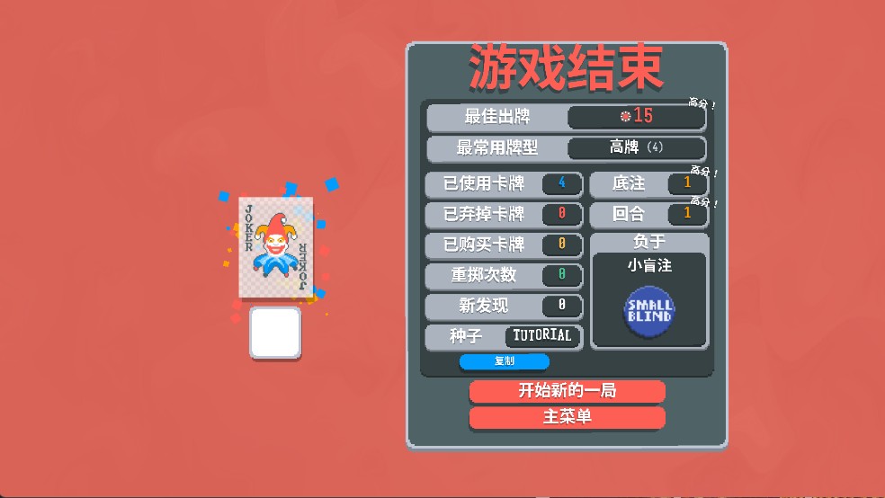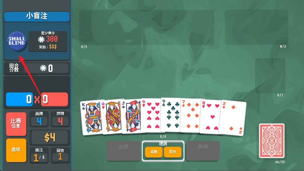 8、回合结束后若达到盲注要求相应分数即为胜利,反之即为失败。