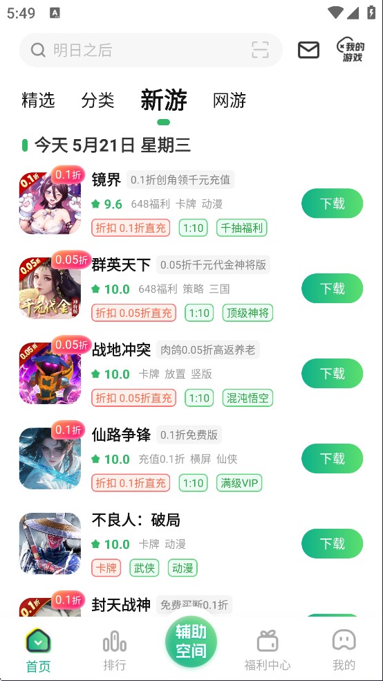 变态手游盒子还会整理出每天新出的游戏以及即将上线的手游