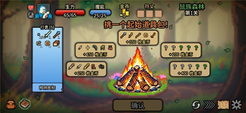 6、选择一个起始道具包。