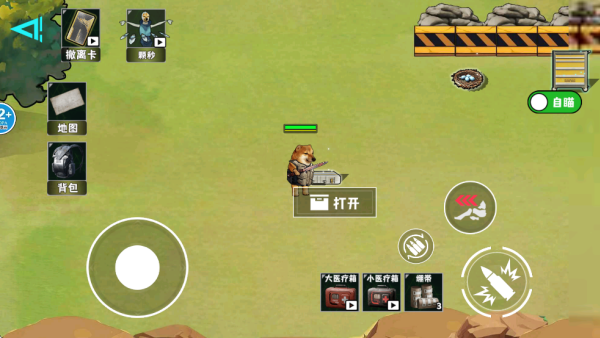 3、当你没血的时候点击下方医疗用品可以打药回血。